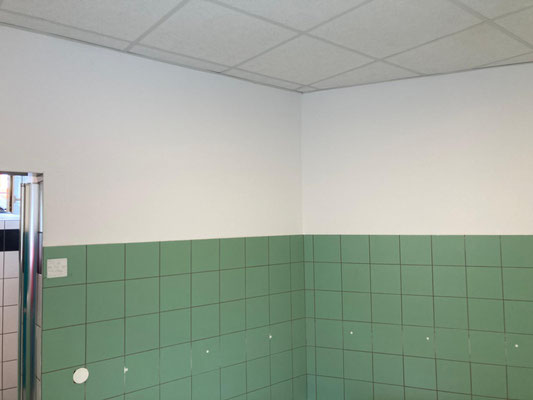 ✅ Neue, abgehängte Decken mit speziell für Feuchträume konzipierten Deckenplatten